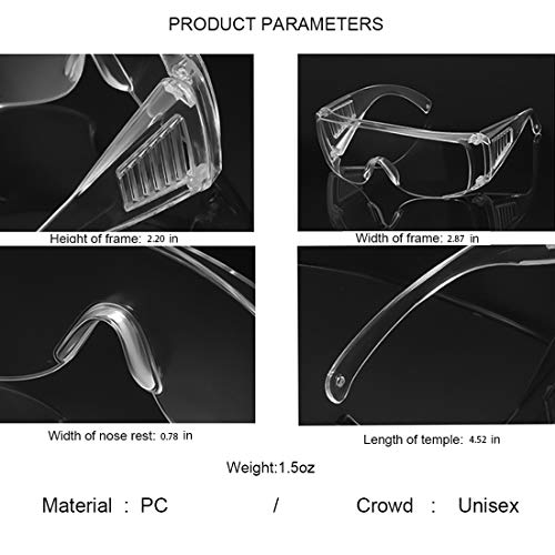 Specification: 2Pcs Transparent Safety Goggles Over Glasses Clear Standard Safety Glasses Full Frame Adult Goggle Anti-fog for Men…