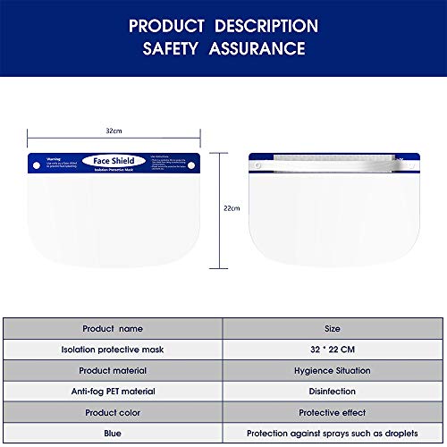 COMFORTABLE & ADJUSTABLE & REUSABLE: This safety face shield could rotates up to 120 degrees and equipped with an elastic band and sponge headband,which is suitable for extended wear. Meanwhile, it is easy to clean with any detergent, which is reusable and durable.