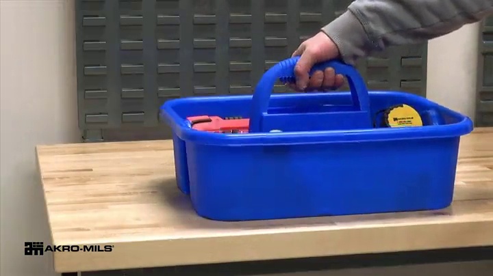 Take all your cleaning supplies, disinfectants, tools, or medical supplies with you with this handy Akro-Mils tote caddy . Deep, oversized pockets hold more cleaning supplies and hardware tools. Comfortable carrying handle. Sold in cartons of 6, priced per each.