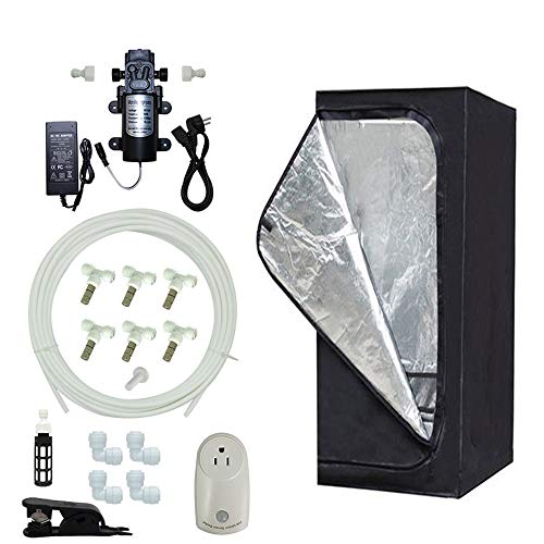 INCLUDED IN YOUR PACKAGE:12V diaphragm pump x 1, automatic sensor x 1,filterx 1,PE pipe(20m),nozzle+nozzle seat x 6,elbow connectorx 4,cable tie x 40,pipe cutter x 1,end plug x 1,Spray pump water inlet and outlet connector x 2(PVC Tunnel Room NOT included)