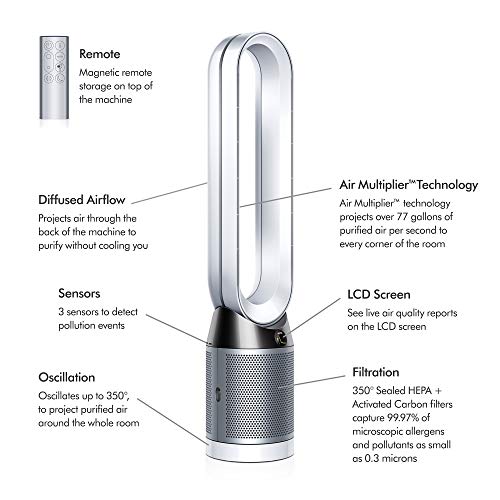 Dyson Pure Cool, TP04 – HEPA Air Purifier and Tower Fan, White/Silver