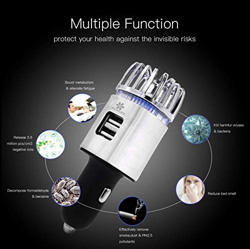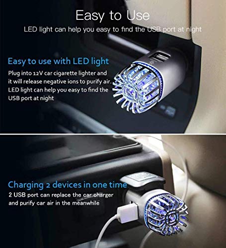 Exemplife Car Air Purifier, Freshener Adapter with 2 USB Ports,Car Air Ionizer Remove Smoke, Bad Smell and Odors,Keep…