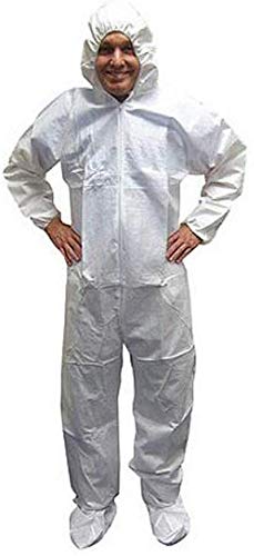 FGS SMS Protective Coverall with Hood, Zipper Front, Elastic Wrist and Ankles, Disposable (XXL, White) (1pc/pk)