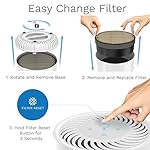 3-STAGE FILTRATION – Includes a pre-filter, HEPA and activated carbon filter to effectively remove the smallest particles in the air. Each filter lasts up to 2100 hours. IMPORTANT: The included filter (located INSIDE the air purifier) ships with a protective plastic sleeve. Please REMOVE PLASTIC SLEEVE from filter BEFORE use.