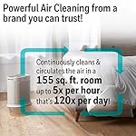 Circulates room air up to 5 times per hour & AHAM CADR 100 – Room Size: 12′ x 13′ (155 sq ft)