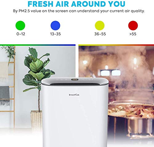 ✔️【Powerful Coverage】Inofia adopt Ture HEPA + Activated Carbon Composite Filter to purify the air around you at the same time, more quickly and powerful than normal air purifier with single filter. The air purifier will filter all the air in a room up to 800 Sq Ft. perfect for bedrooms, family rooms, and other open-concept spaces.