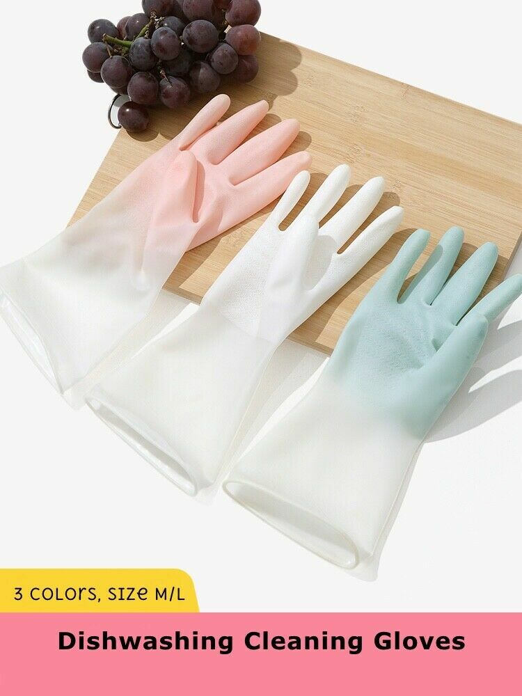 USA SELLER FAST SHIPPING Magic Silicone Dishwashing Gloves All-purpose Kitchen Clean Pink – White – Blue / SIZE MEDIUM – LARGE