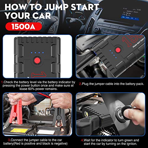 NEXPOW Car Battery Starter, 1500A Peak 21800mAh 12V Portable Auto Car Battery Charger Jump Starter Battery Pack with USB…