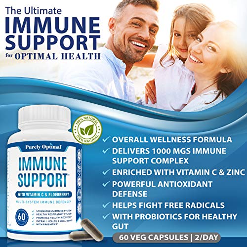 Premium Immune Support Supplement – Immune Booster for Adults w/Vitamin C, Elderberry, Zinc & Probiotics – Immune System…
