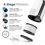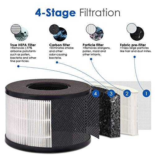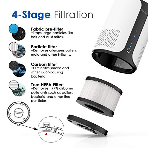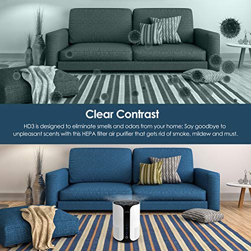 EFFICIENT FOUR-STAGE FILTRATION SYSTEM – HD3 HEPA Air Purifier features a four-stage filtration system. This comprises a pre-filter, a particle filter, a HEPA filter, and an activated carbon filter, powerful enough to capture up dust, pollen, smoke, odor, pet dander, filters particles as small as 0.3 microns and air pollution of PM 2.5.