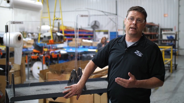 【VERSATILE】Three mounting configurations: Freestanding, attached to a counter, or fixed to the edge of a surface | 12” x 4” Transaction window cutout at the bottom allows for an easy transfer of cash, cards, or documents
