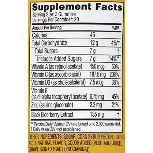 Specification: Zarbee’s Naturals Elderberry Immune Support with Vitamin C & Zinc, Natural Berry Flavor, 60 Count